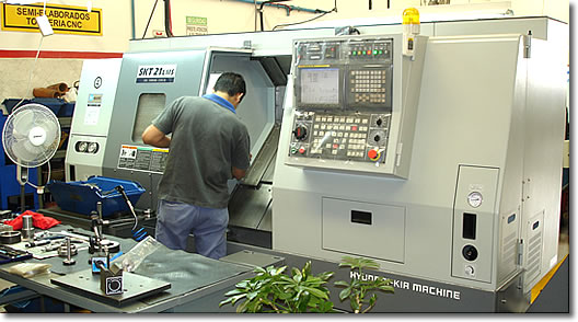 Tres tornos Hyundai-Kia SKT-100, dos equipados con alimentador de barras.